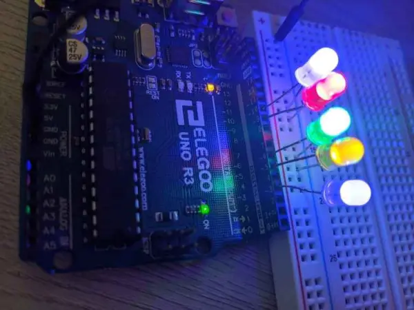 - Adding More LEDs: The instruction to add four more LEDs, bringing the total to five, expands the circuit’s complexity and visual output. These additional LEDs, chosen by color, will be the new visual indicators for the customized program.